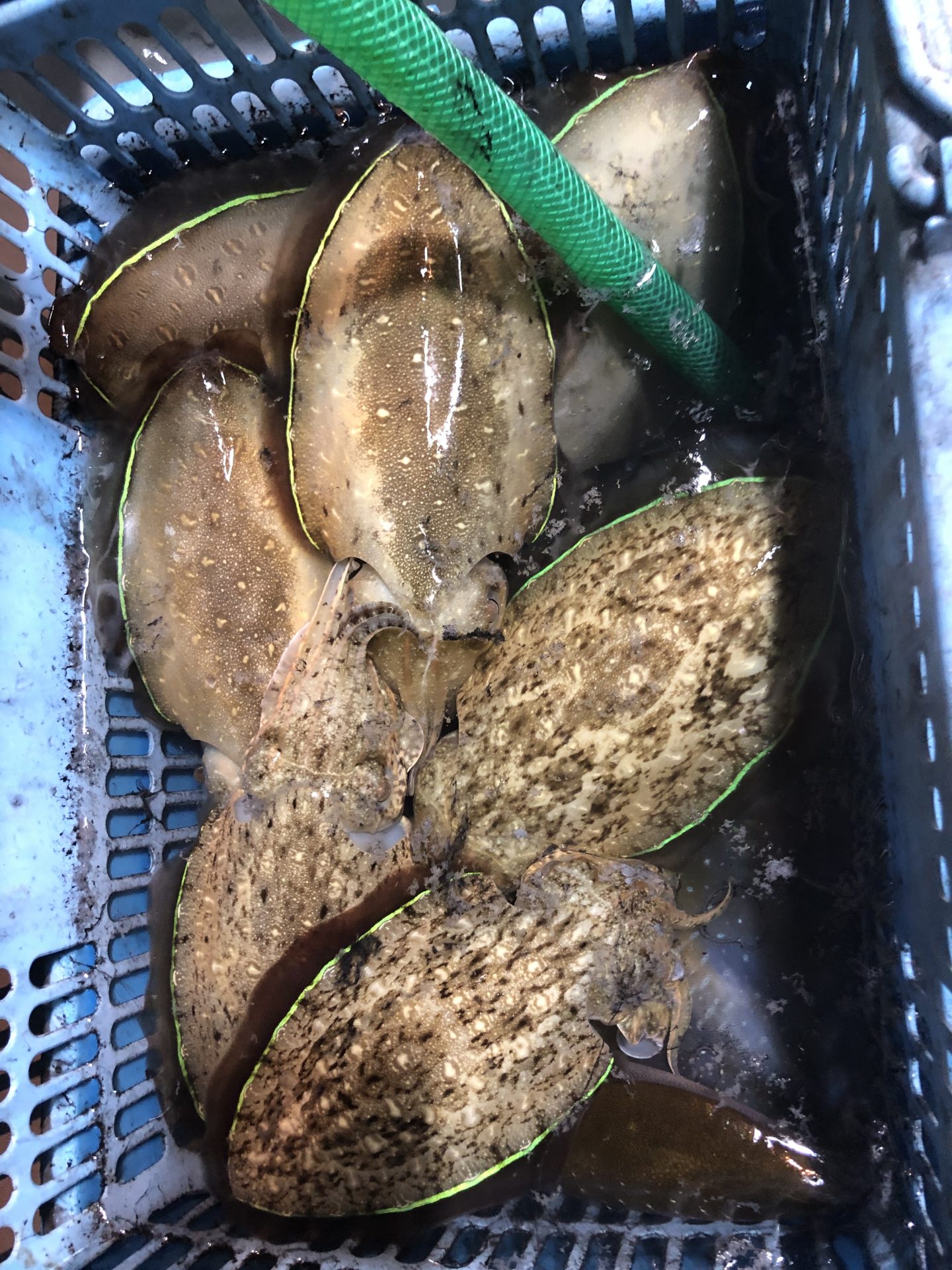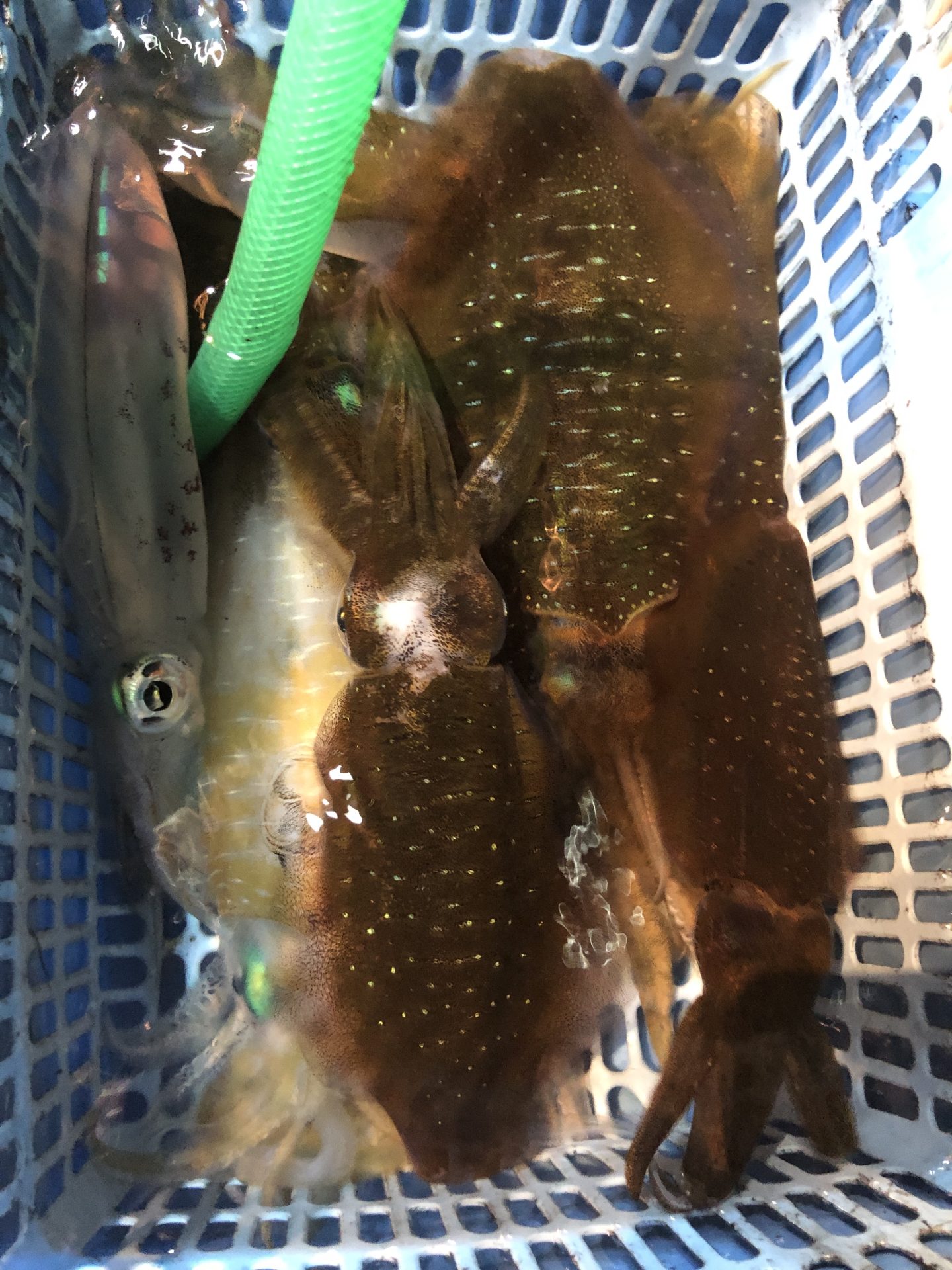 アオリイカの半夜便です。 2025年9月24日 カテゴリー: 釣果情報 2025.9.23 今日も浅場でアオリイカ狙いです。明るい内には姿見れず、点灯してから釣れ出しマイカ混じりのコウイカの活性が高めでした。風が少し強く船が振られて釣りにくい中、お土産が出来ました。御乗船ありがとうございました。 次の記事:アオリイカの半夜便です。 2025.9.26 今日も浅場でアオリイカ狙いです。点灯後早々に顔が見れましたがその後が続かず我慢でした。中盤に少し活性が上がりアオ 前の記事:アオリイカの半夜便です。 2025.9.22 今日は浅場でアオリイカ狙いです。明るい内の流し釣りでは顔が見れず、ポイントを変えてアンカーでライトアップしました