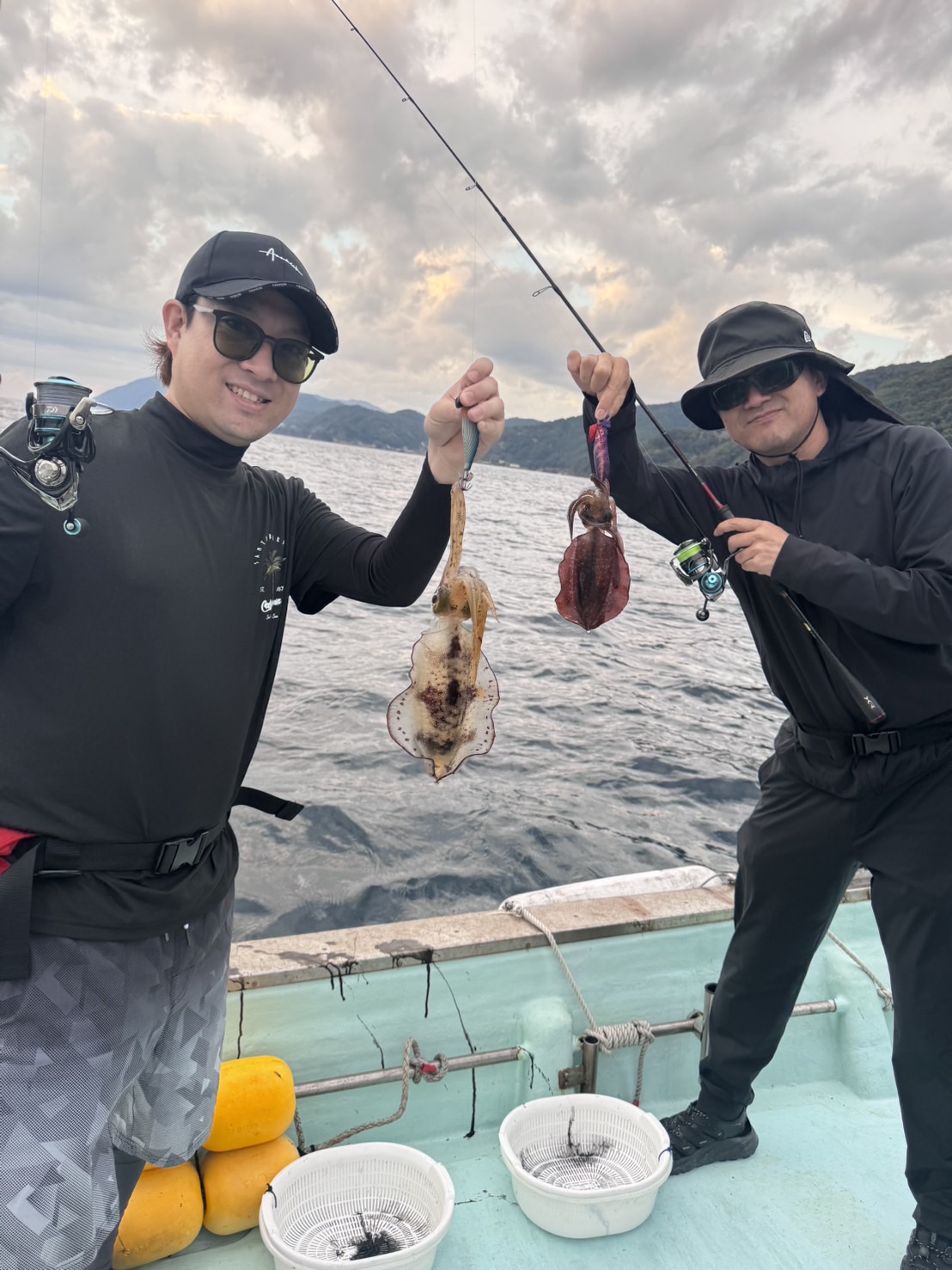 アオリイカの午後便です。 2025年10月12日 カテゴリー: 釣果情報 2025.10.12開始早々トリプルヒットスタート、良型ゲットから始まりポツポツ釣れました。コウイカも混じりお土産は取れました。後半流れが緩くなり良く無い条件の中でも追加することが出来たので良かったです。ご乗船ありがとうございました。 次の記事:アオリイカの半夜便です。 2025.10.12 今日はポイントを変えてアオリイカ狙いです。釣れ出しは少し遅めでしたが中盤からアオリイカ、コウイカの連発もあり、 前の記事:アオリイカの午前便です。 2025.10.12朝イチ釣れたので期待しましたがポイントランガンの拾い釣りになりました。型は良型が多く良かったです。風が強く吹き波