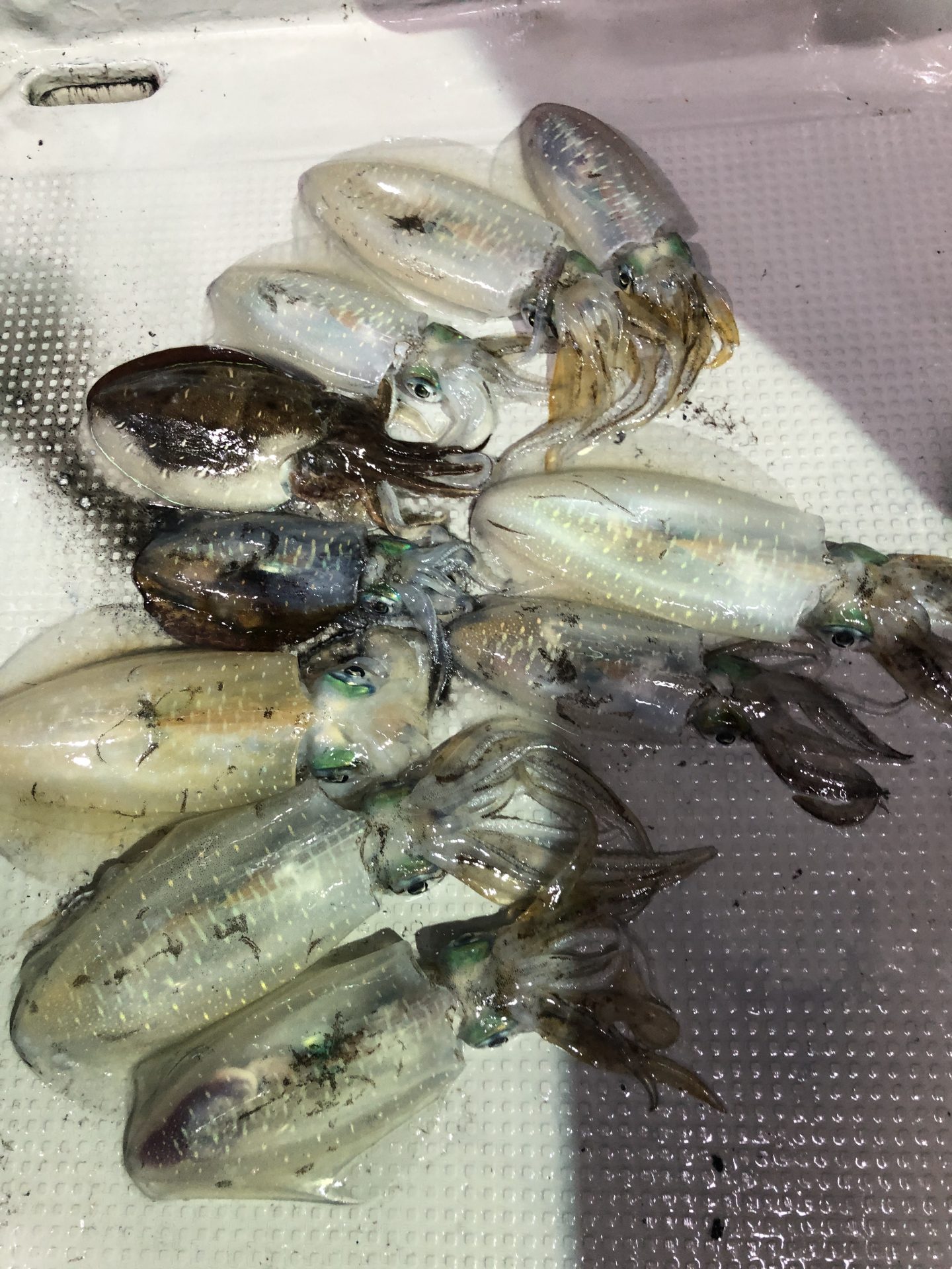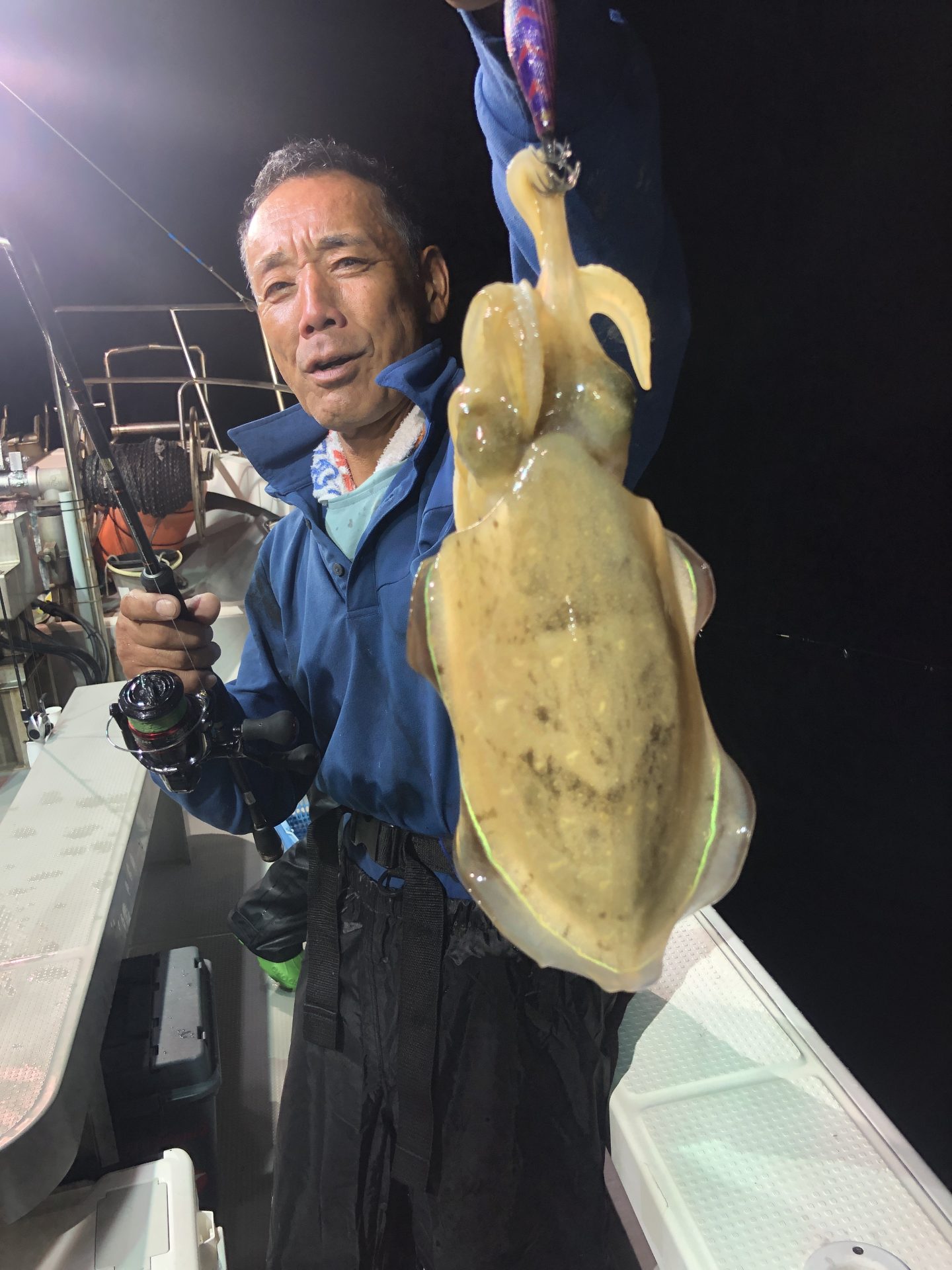 今日はポイントを変えてアオリイカ狙いです。釣れ出しは少し遅めでしたが中盤からアオリイカ、コウイカの連発もあり、浮いてきたアオリイカもキャッチでき賑やかになりました。釣果に差が出ました。型は良型混じりの中型中心でした。御乗船ありがとうございました。