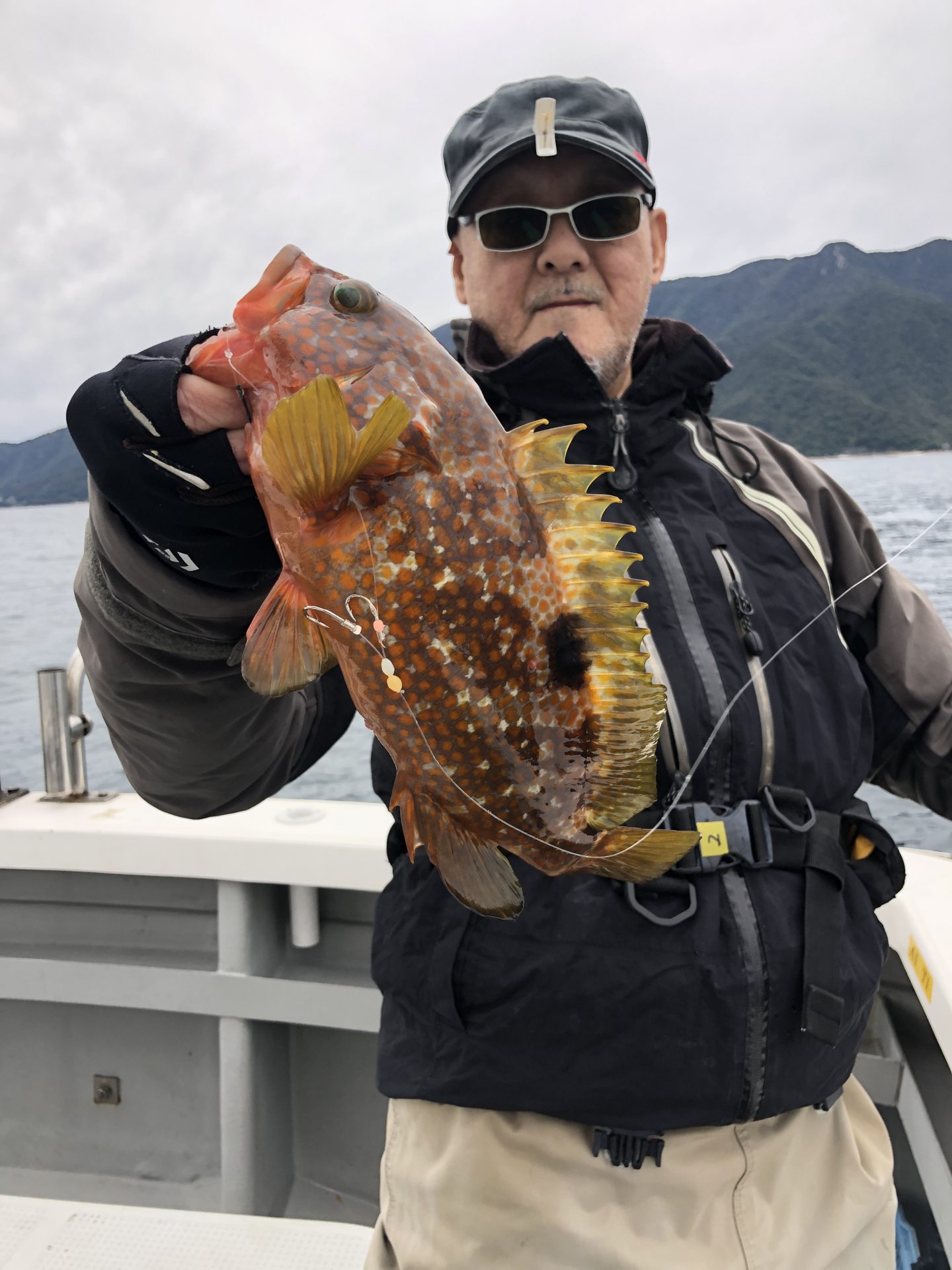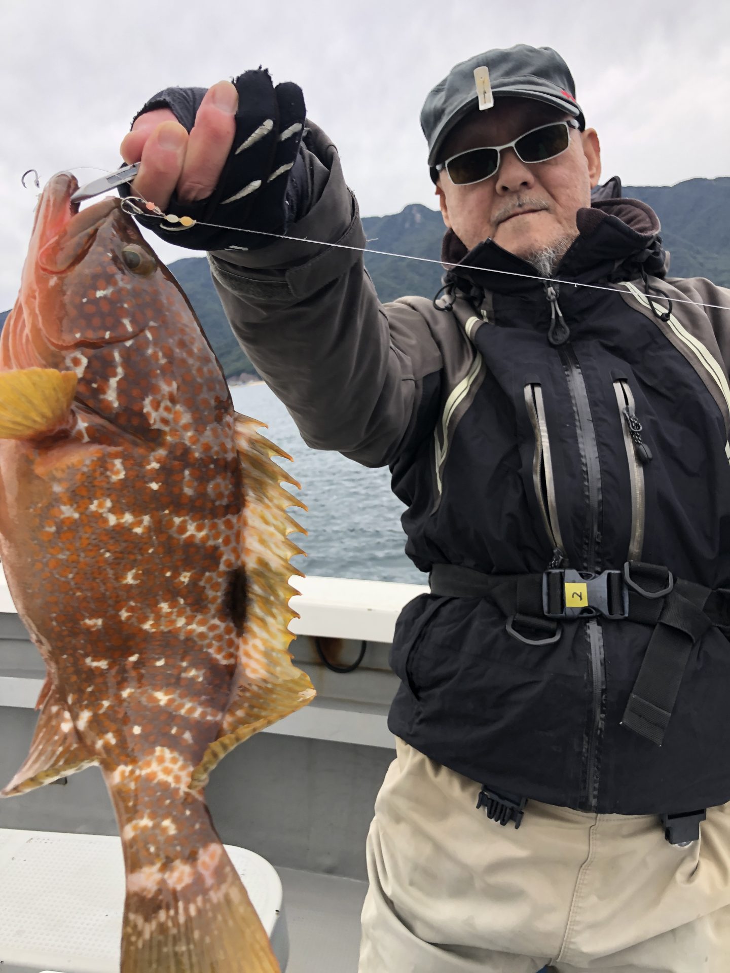 今日は風、波があり釣り辛い海況でしたが早々にアコウが連発しました。活性が落ちてからはポイントを転々と探りましたが伸び悩みました。御乗船ありがとうございました。