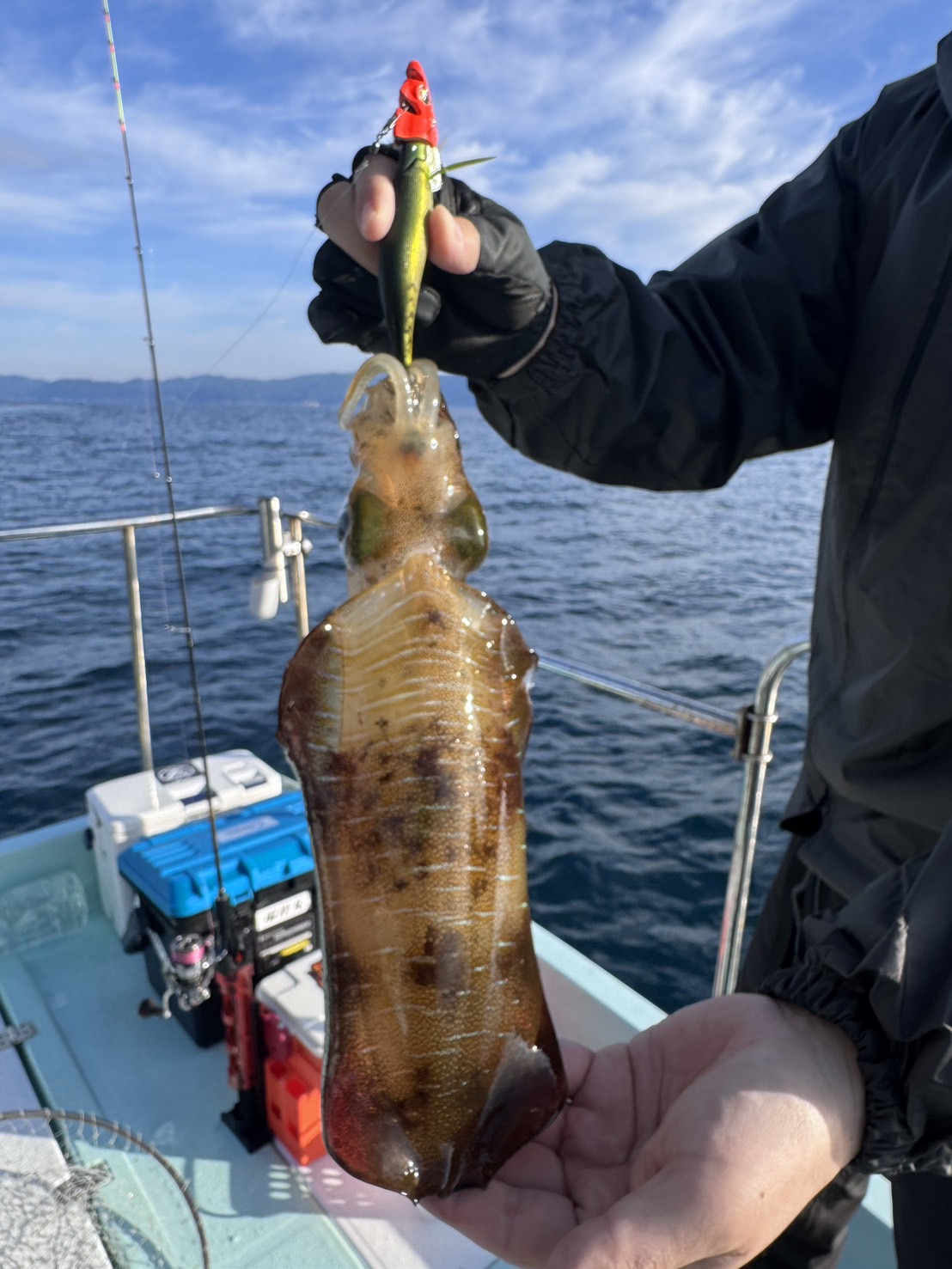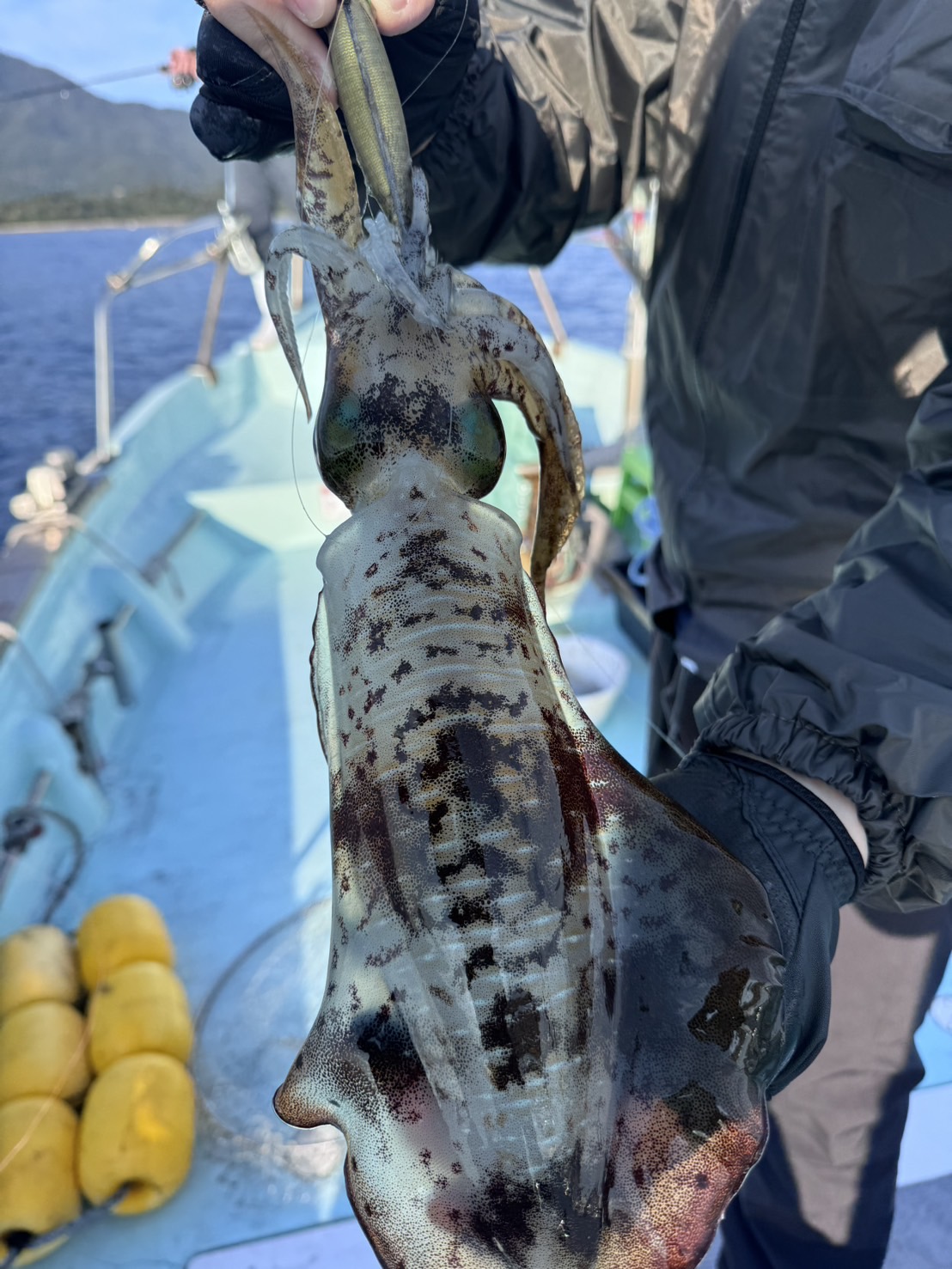 朝イチいい風が吹いており、開始早々いい型のアオリイカとコウイカが釣れ、途中追尾もあり良かったですが風がやんでからは厳しかったです。