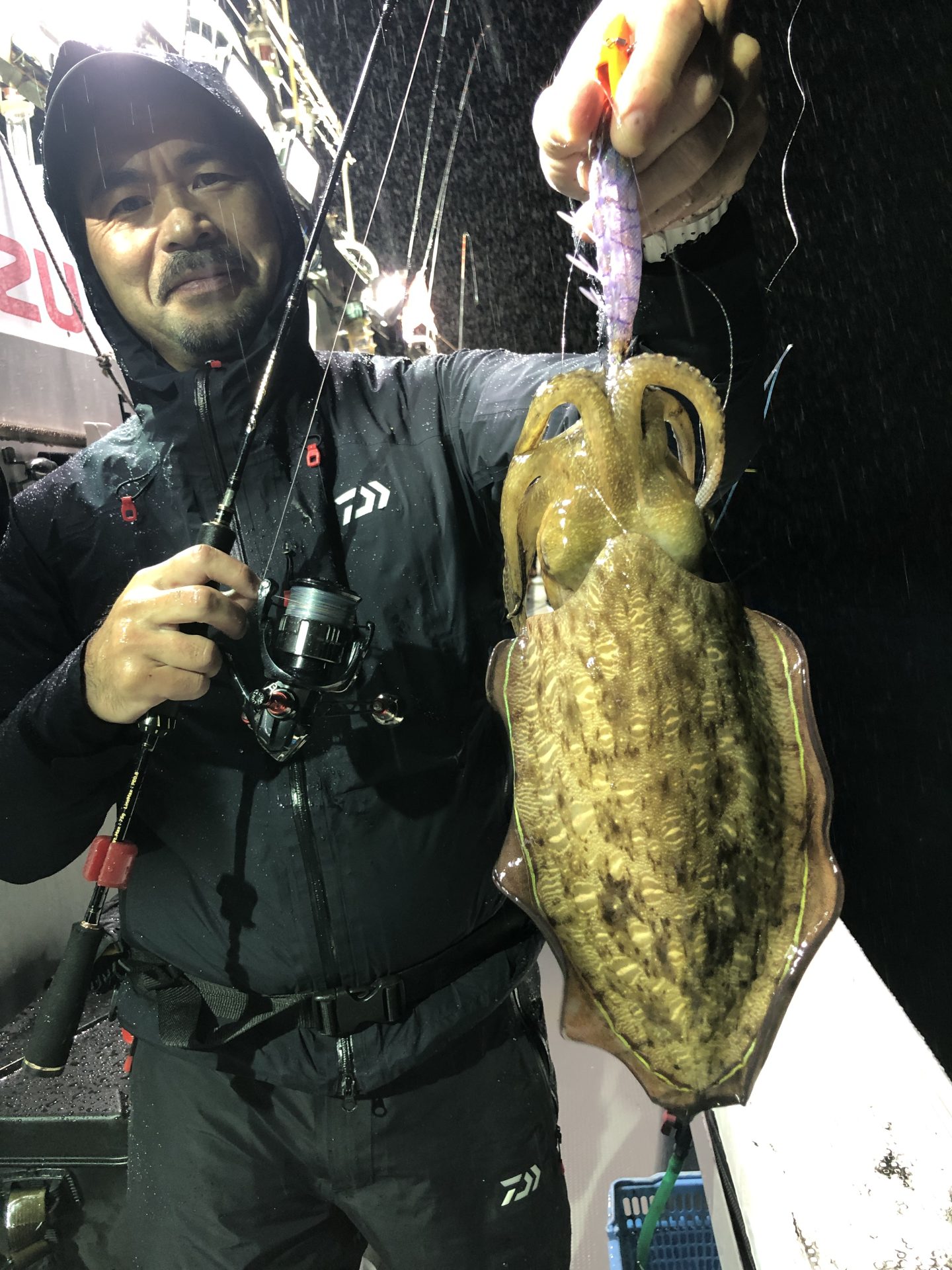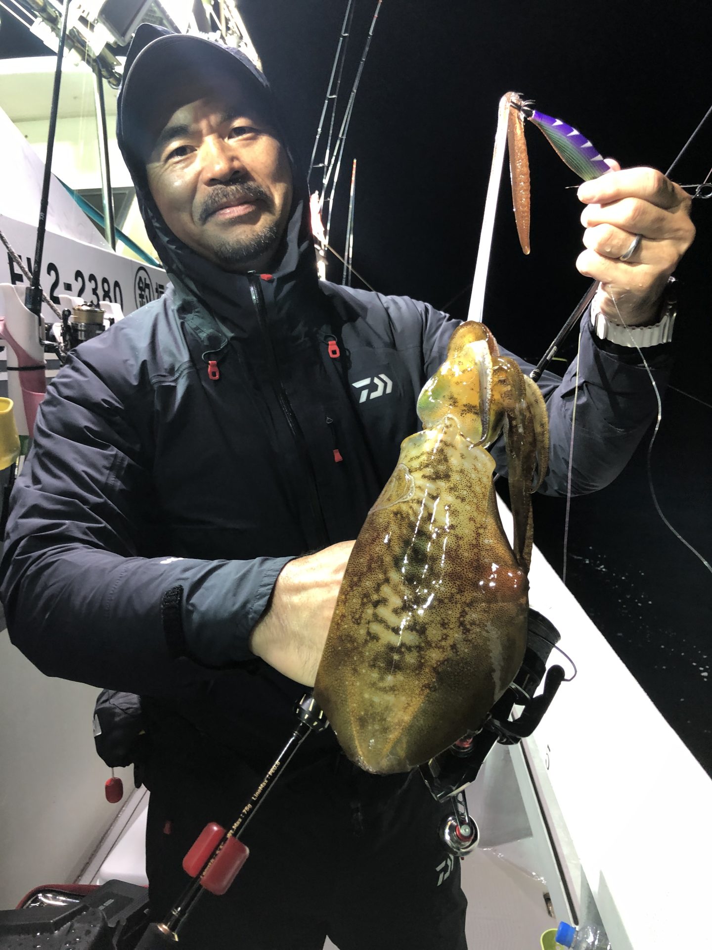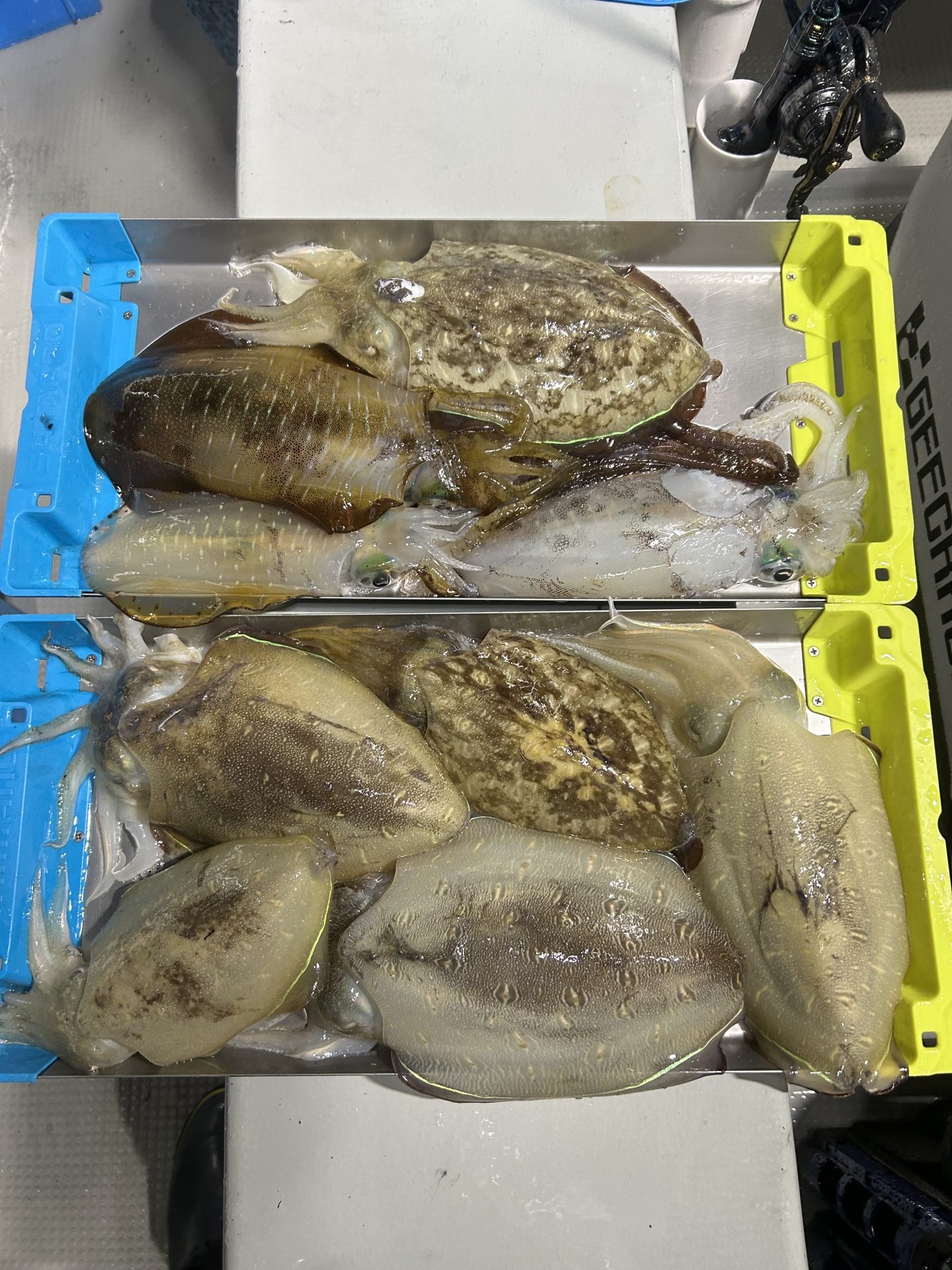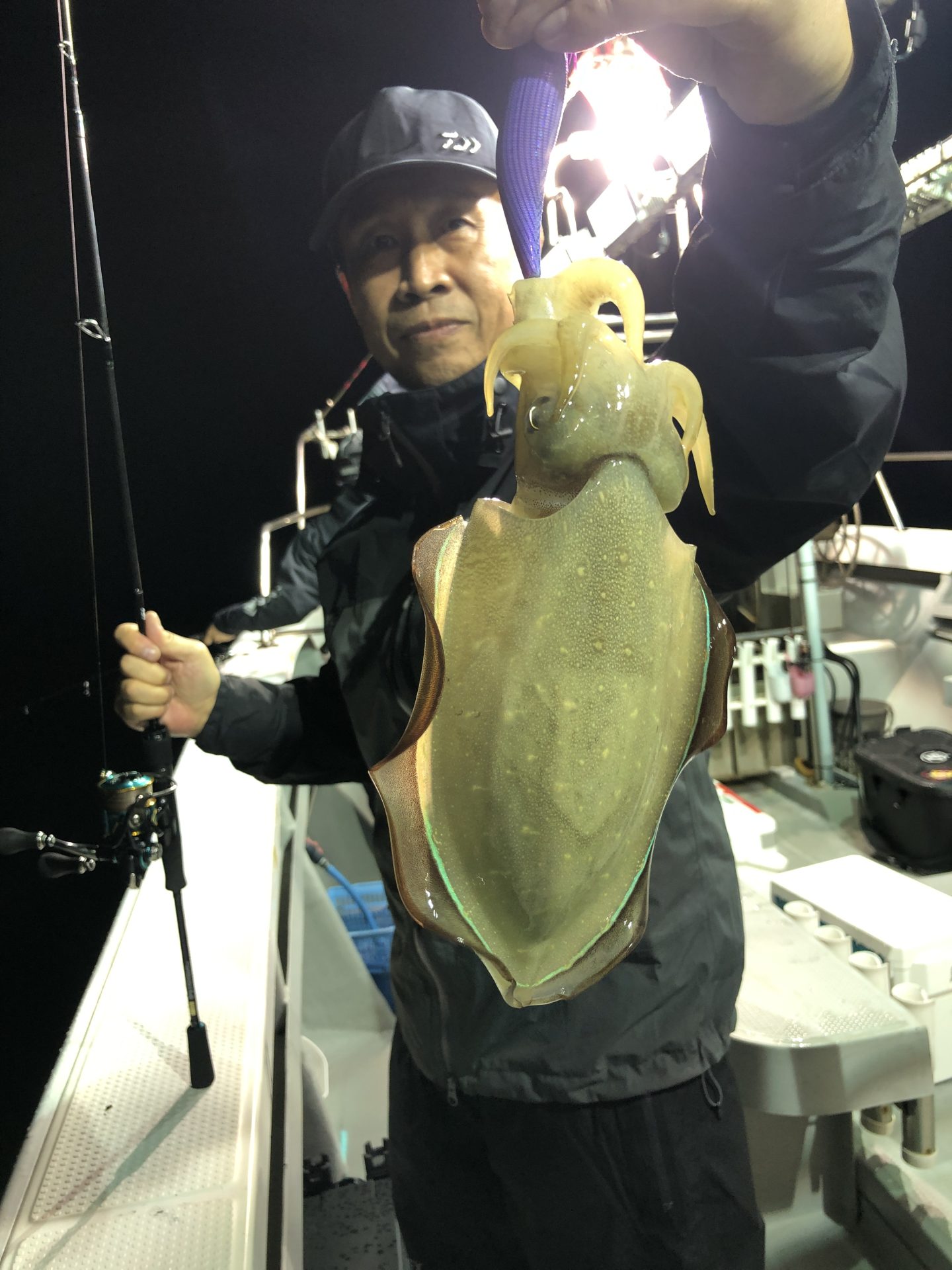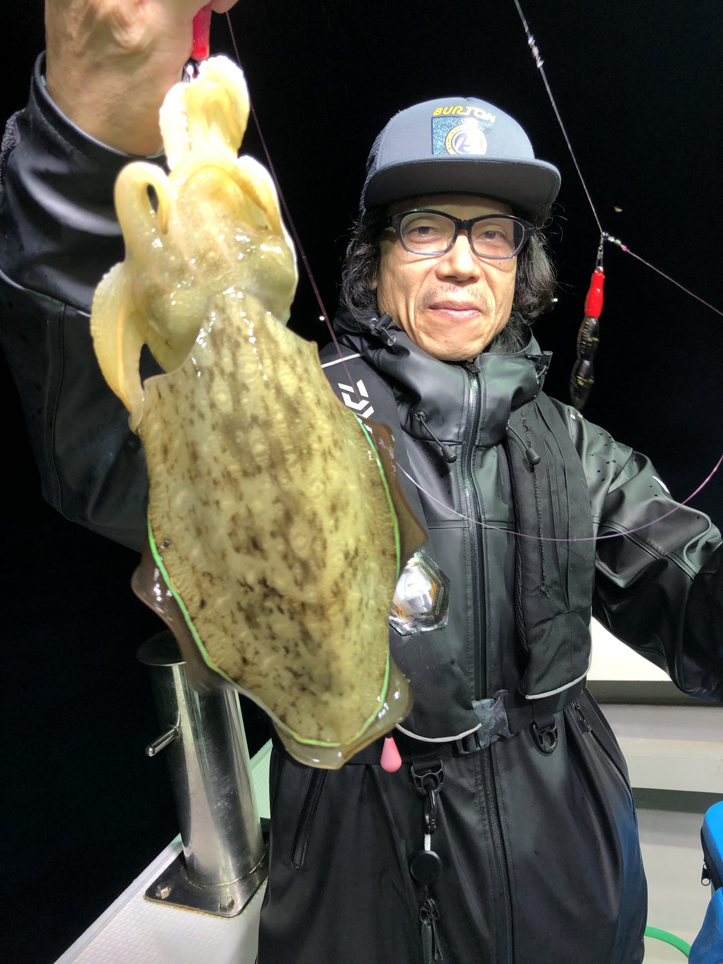 アオリイカの半夜便です。 2025年10月26日 カテゴリー: 釣果情報 2025.10.25 浅場でアオリイカ狙いです。潮が速く釣り辛くオマツリも多発しました。中盤から釣れ出しましたがアオリイカよりコウイカの割合が高めでした。御乗船ありがとうございました。 前の記事:アオリイカの午前便です。 2025.10.25今季初の1キロジャストのアオリイカ出ました。朝イチいい風が吹いており、開始早々いい型のアオリイカとコウイカが釣れ